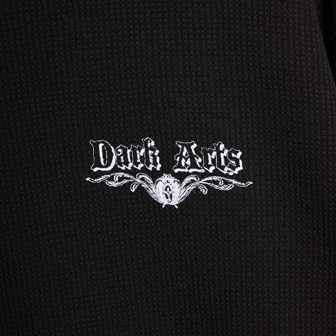 Dark Arts Longsword waffle knit black long-sleeve, hand-printed in the US.