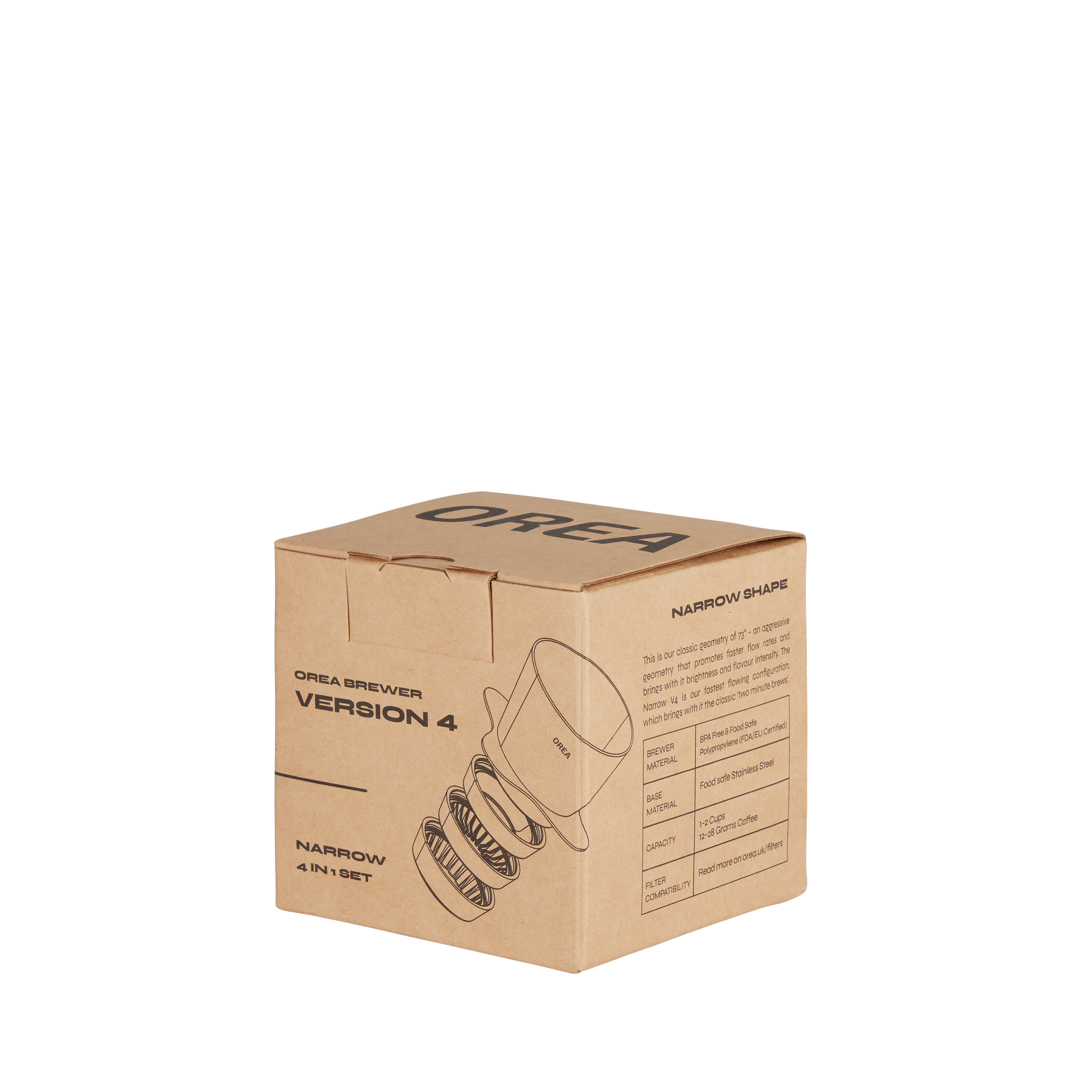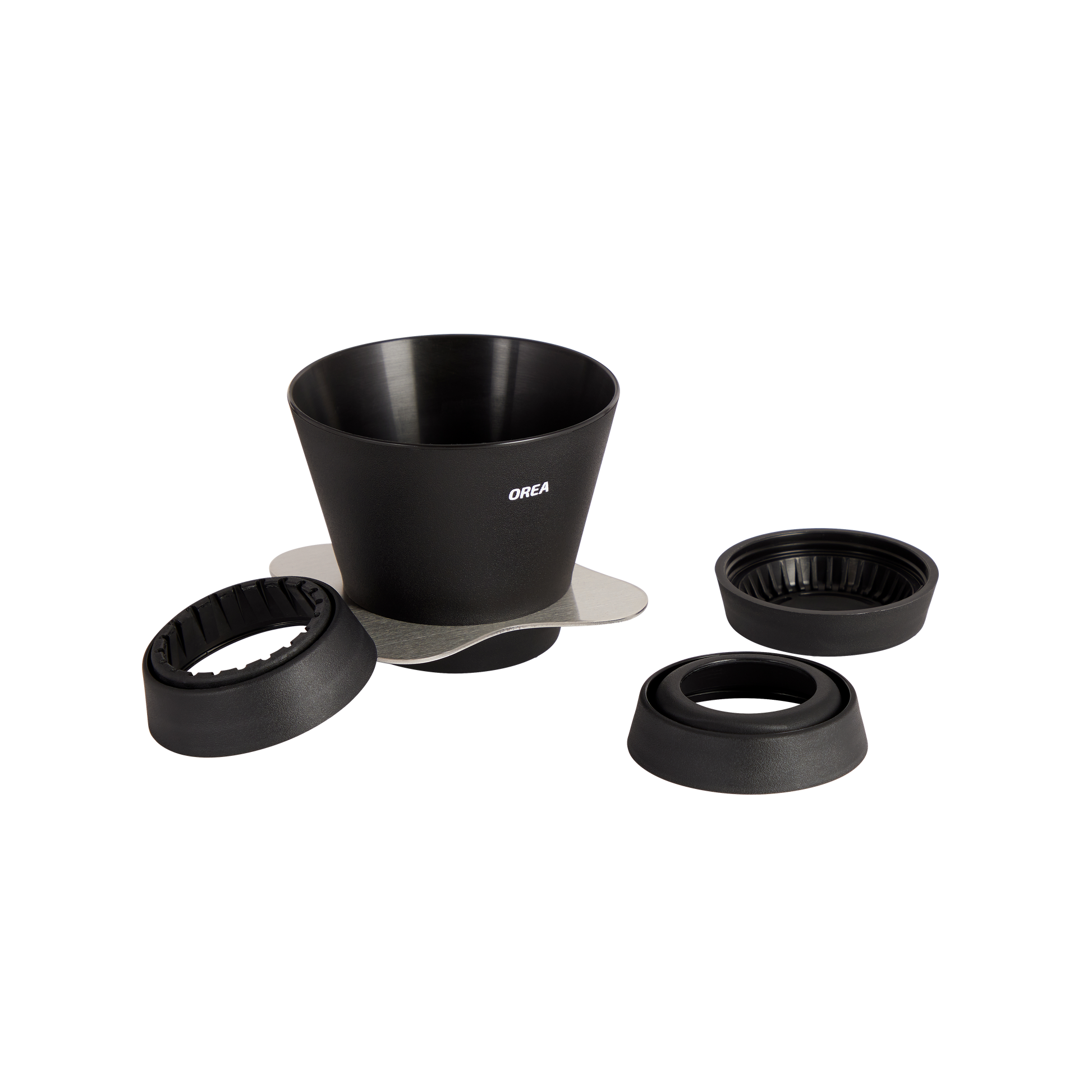 OREA's newest coffee brewer offers four unique brewing methods in a single device, representing the latest evolution in design. Built with a durable, high-impact Polypropylene body that is BPA-free and meets FDA and EU food safety standards, it also features a sleek, precision-machined stainless steel base for a premium finish. This set includes four interchangeable bases: