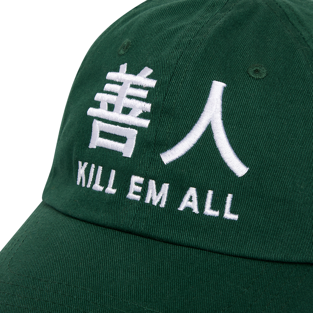 Dark Arts, Utopia Project 6-panel bottle green hat with off white embroidery.