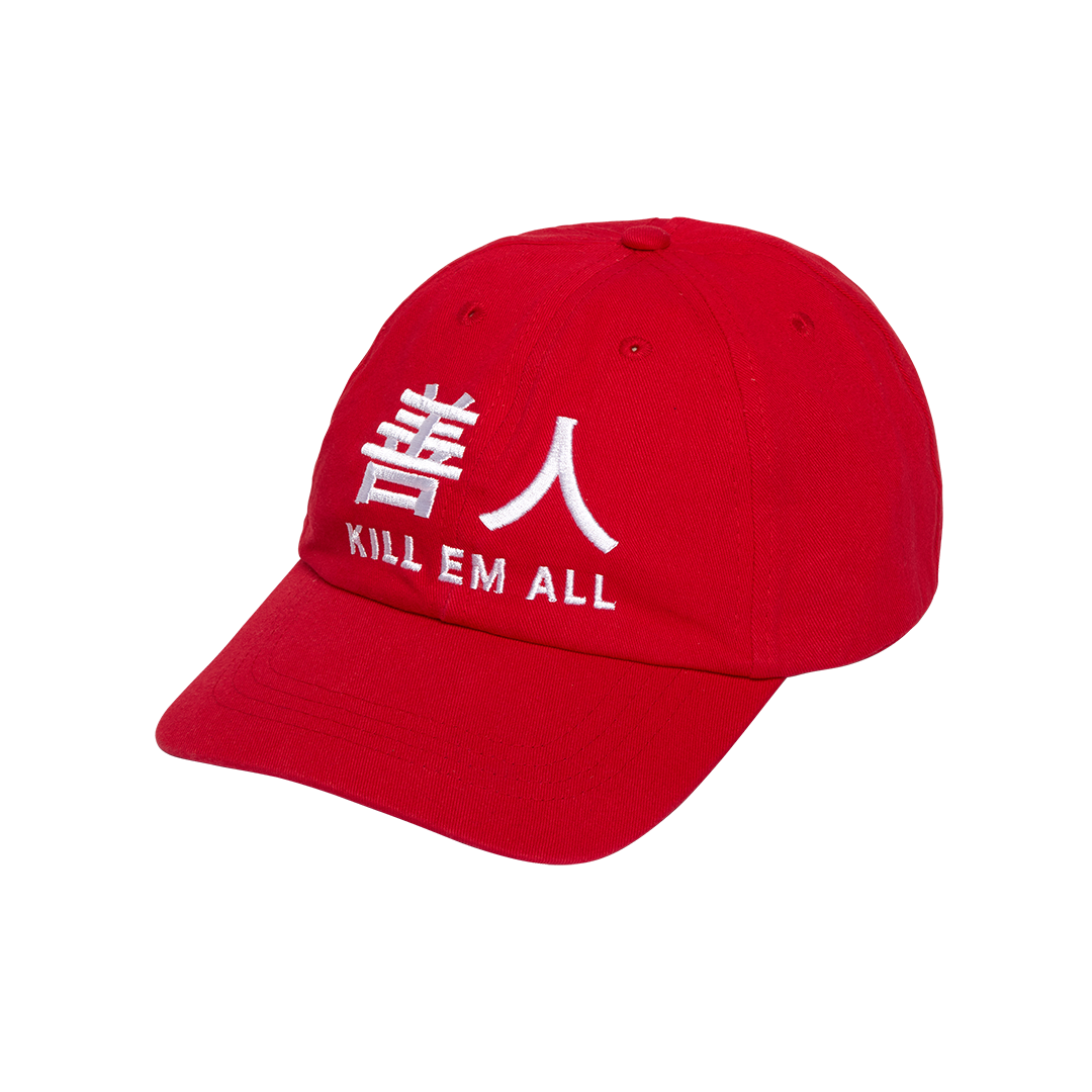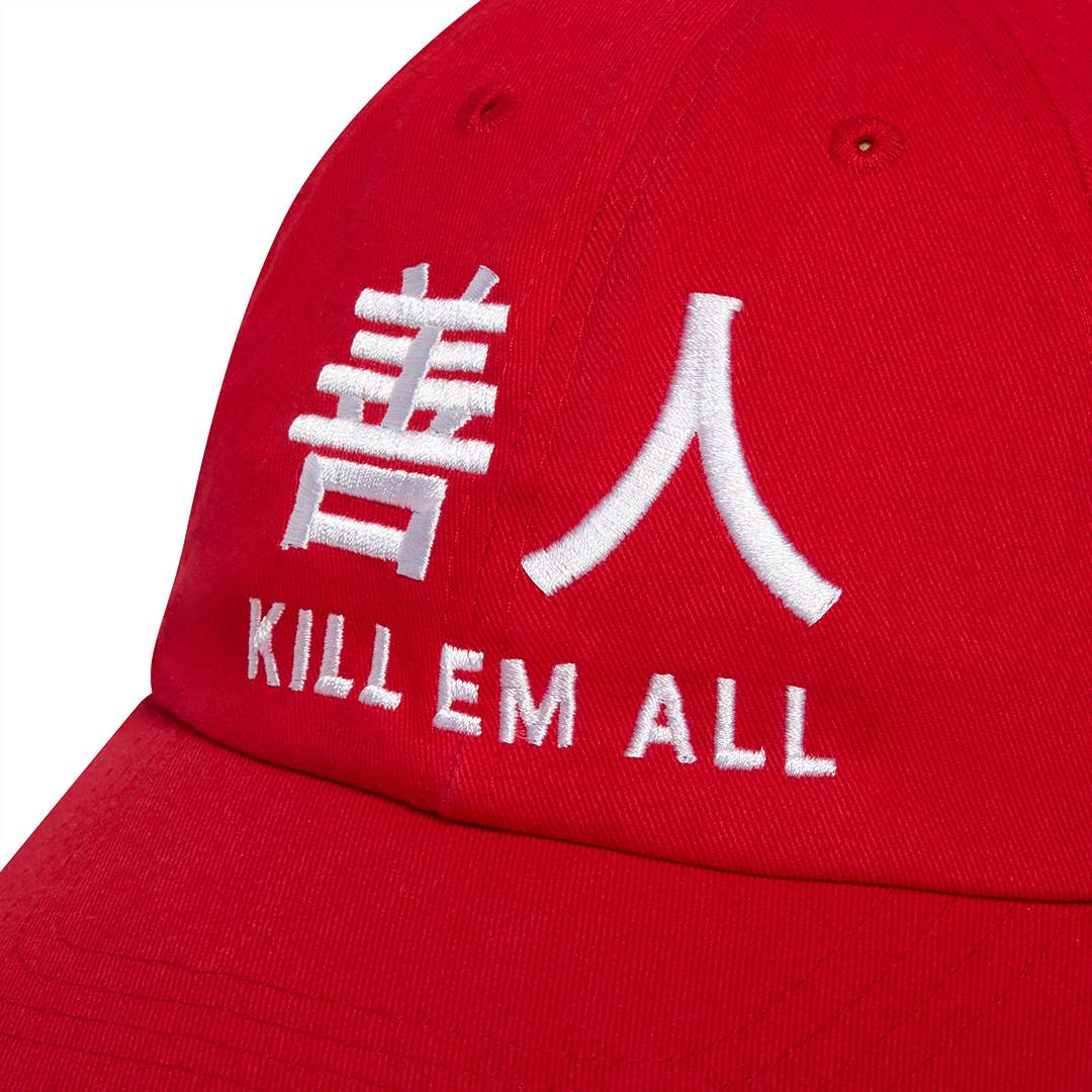 Dark Arts, 6-panel red hat with white embroidery.